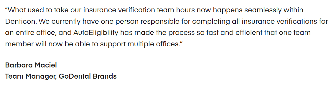 AutoEligibility eliminates portal logins and payer calls by surfacing standardized eligibility and coverage details. This includes deductibles, frequency limits, and Medicaid directly inside Denticon.
